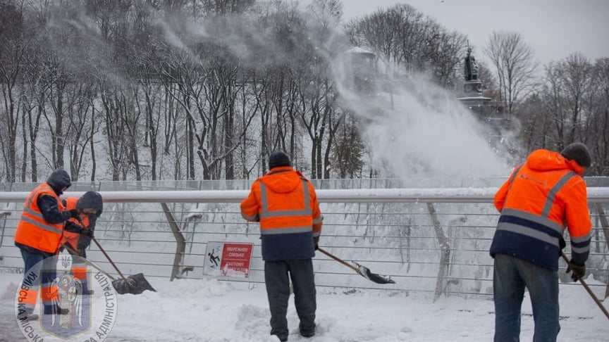 До прибирання снігу в столиці залучили понад 300 одиниць очисної техніки, розповіли в КМВА. Першочергово роботи з прибирання снігу проводять на спусках, підйомах, мостах, головних автодорогах міста. Дороги, тротуари, зупинки транспорту обробляють протиожеледними засобами.
