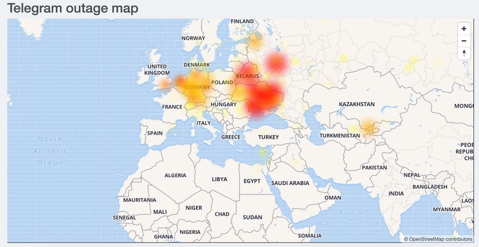 Згідно з картою збоїв, найбільші проблеми спостерігаються у користувачів в Україні, Білорусі та Росії.