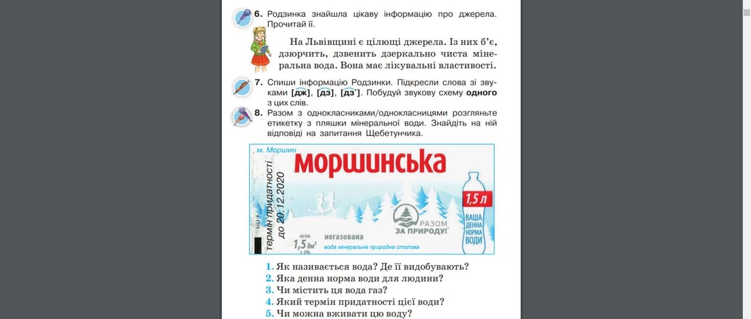 У шкільному підручнику з української мови для 3 класу надрукували, імовірно, приховану рекламу «Моршинської». Хоча сама компанія це заперечує.