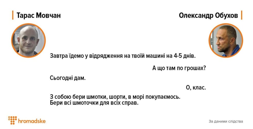 Напередодні повернення Мовчан мав розмову з Власюком, в якій розповів, що вони повертаються. А ще питав, кому віддати 250 доларів Бродського, які залишились.