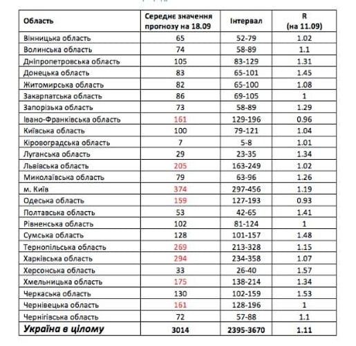 Вчені з Інституту проблем математичних машин і систем НАН України зазначають, що через чотири дні в середньому буде зафіксовано 3014 випадків захворювання коронавірусом серед українців. Найбільший показник — 374 випадки — можуть виявити у Києві, а найменший — 7 випадків — у Кіровоградській області.