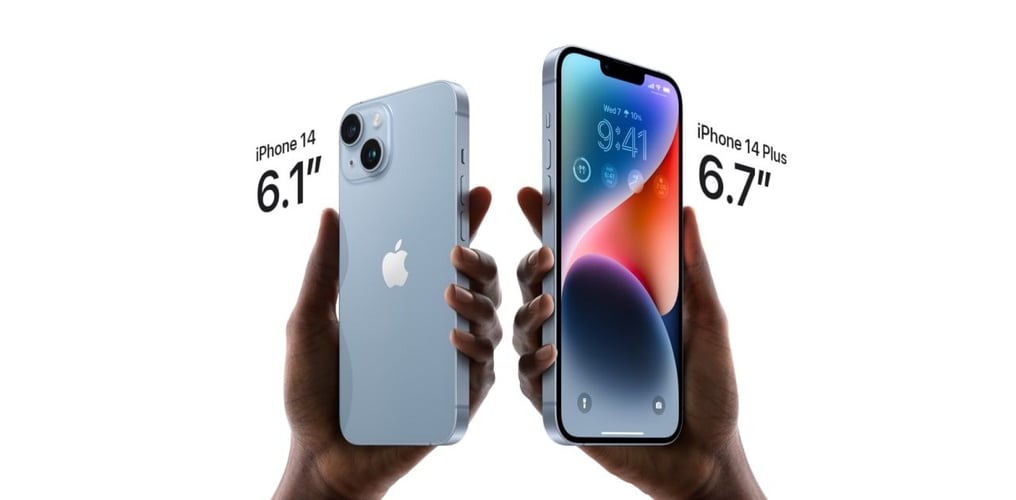 Смартфон iPhone 14 матиме 6,1-дюймовий екран, а iPhone 14 Plus — 6,7-дюймовий. Обидва смартфони оснащені минулорічним чіпом A15 Bionic, але матимуть нові 12-піксельні камери. Розробники кажуть, що якість зображення при слабкому освітленні покращилася на 49%, а тривалість роботи акумулятора iPhone 14 Plus буде найбільшою серед всіх смартфонів компанії.