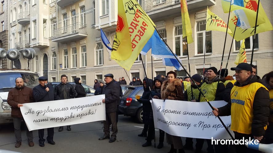 У центрі Києва 15 січня близько сотні активистів вимагали від Верховної Ради не ухвалювати зміни до Трудового кодексу, які раніше запропонував Кабмін.