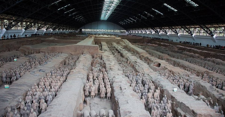 Вперше теракотову армію створили для гробниці першого імператора династії Цинь, Цинь Шихуанді, який об’єднав під своєю владою сім держав Внутрішнього Китаю і добудував Велику стіну. У неї входило щонайменше вісім тисяч статуй піших воїнів в людський зріст в повному озброєнні, коні, вершники та бойові колісниці. За свідченням історика Сими Цяня (145-90 роки до нашої ери), будівництво гробниці імператора тривало понад 30 років і в ньому було залучити понад 700 тисяч робітників.
