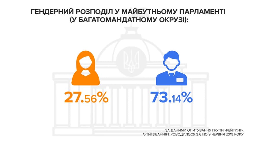 «Слуга народу» не дотрималася гендерного балансу у своєму списку, як обіцяла. Лише 30% списку — жінки. Загалом у майбутньому парламенті без урахування мажоритарників буде втричі більше чоловіків.