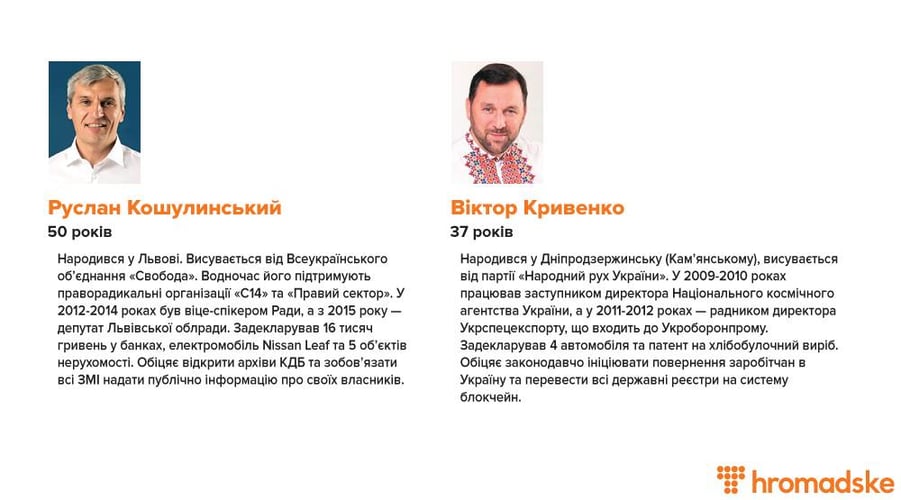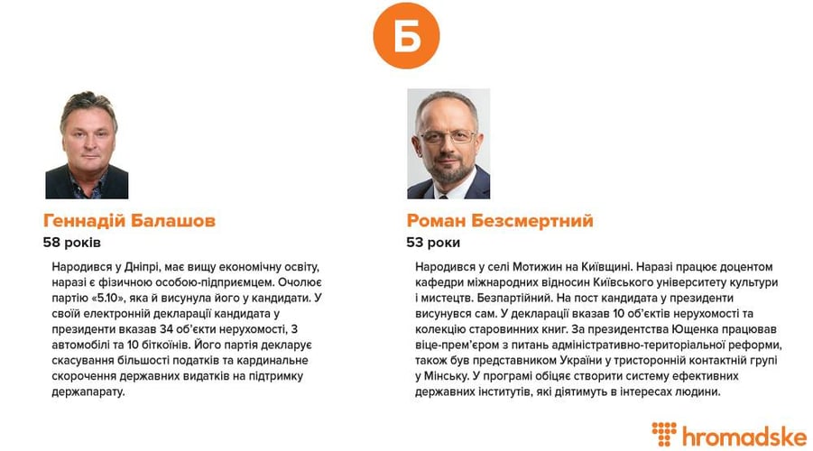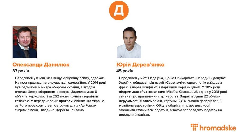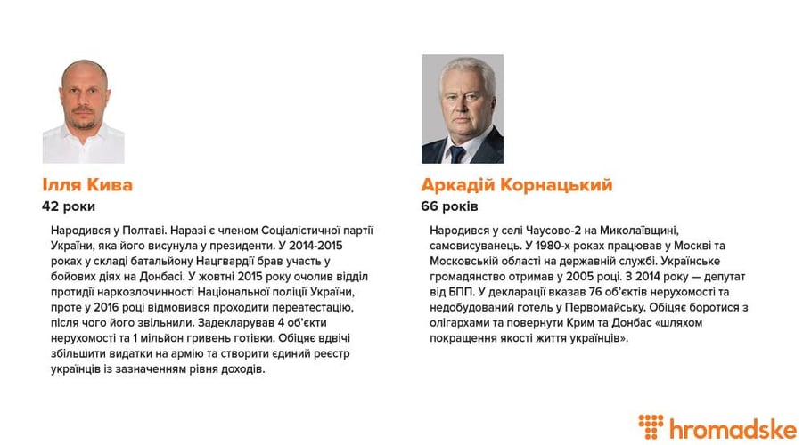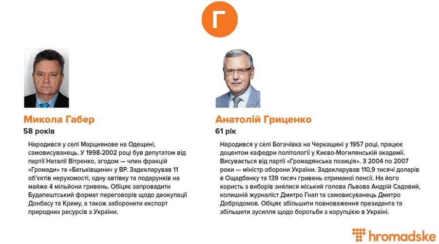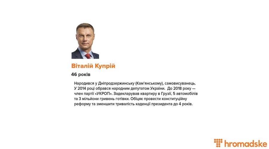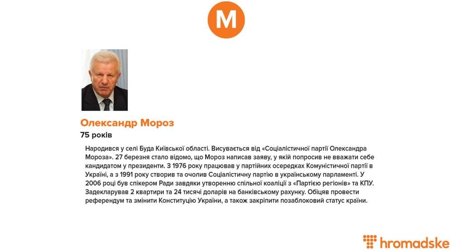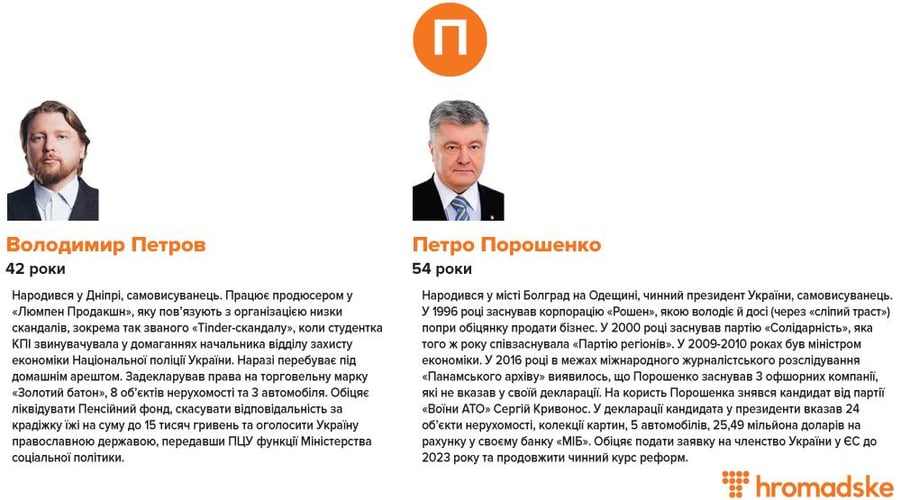 За кілька днів до голосування Громадське зібрало коротку довідку про кожного з учасників президентських перегонів.