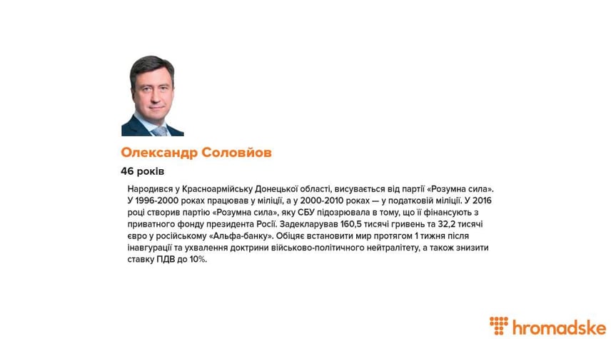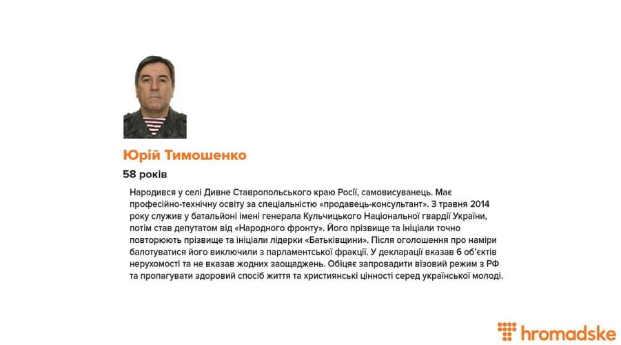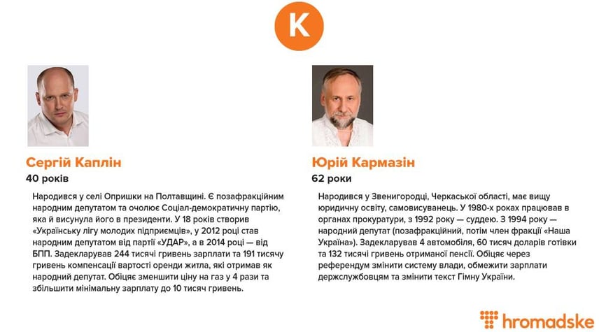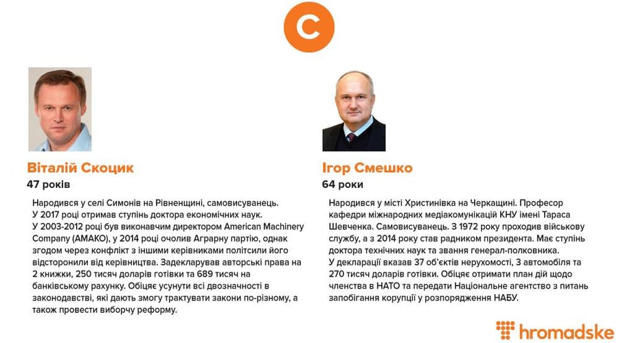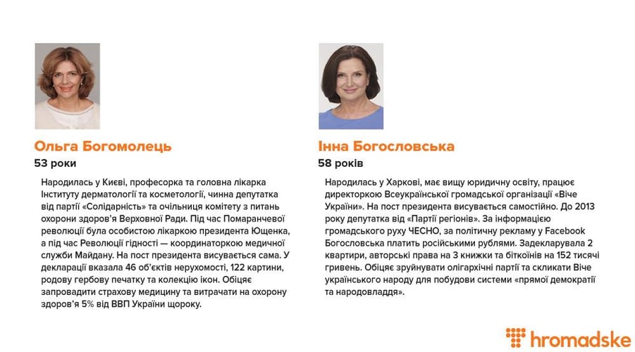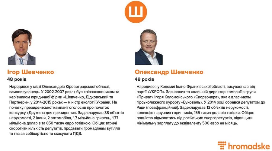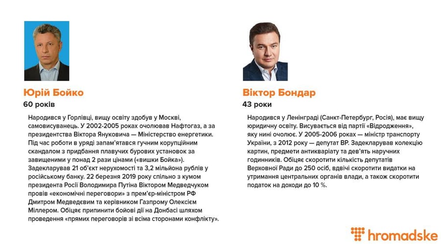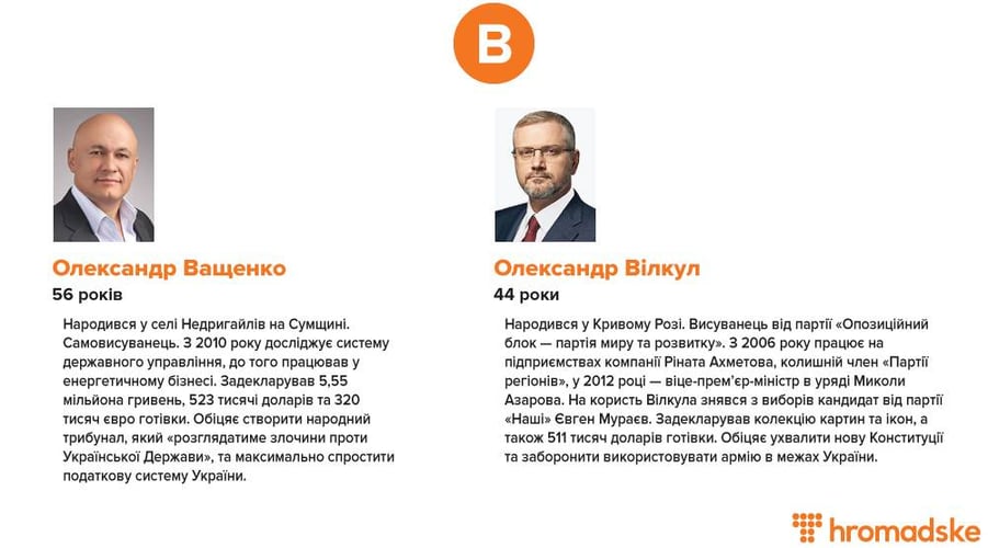 За кілька днів до голосування Громадське зібрало коротку довідку про кожного з учасників президентських перегонів.