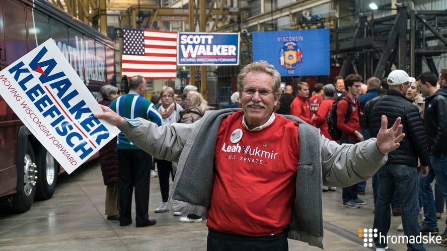 Із Джеффом ми зустрічаємось на агітаційному віче «Республіканської партії», за день до виборів. Воно відбувається на околицях Мілуокі — найбільшого міста штату. В ангарі, який поспіхом переобладнали під урочистий зал, збираються люди. Вони прийшли послухати кандидатів, а також спікера нижньої палати Конгресу Пола Раяна, який приїхав їх підтримати.