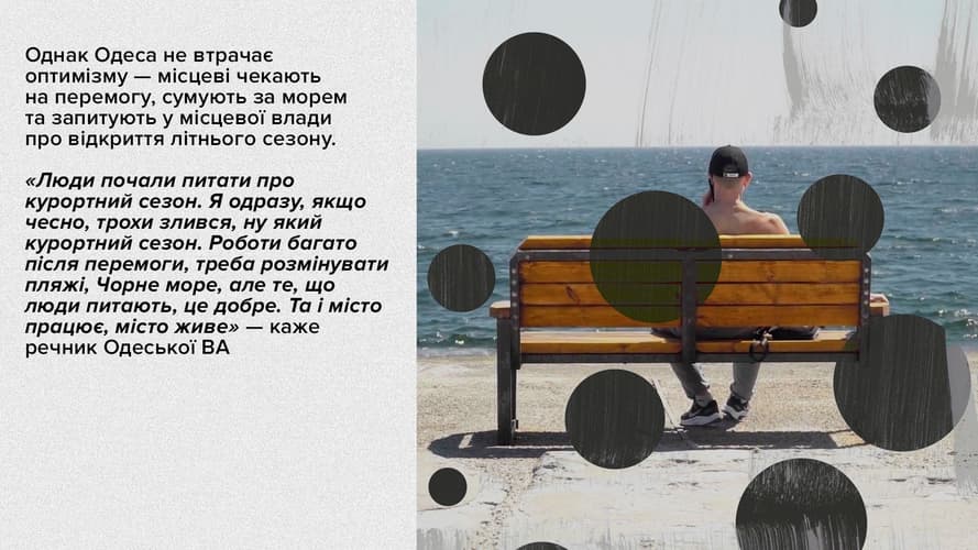 З кінця квітня Одеса перебуває під частими ракетними обстрілами росіян. Втім місто не втрачає оптимізму — місцеві чекають на перемогу, сумують за морем та запитують у місцевої влади про відкриття літнього сезону.