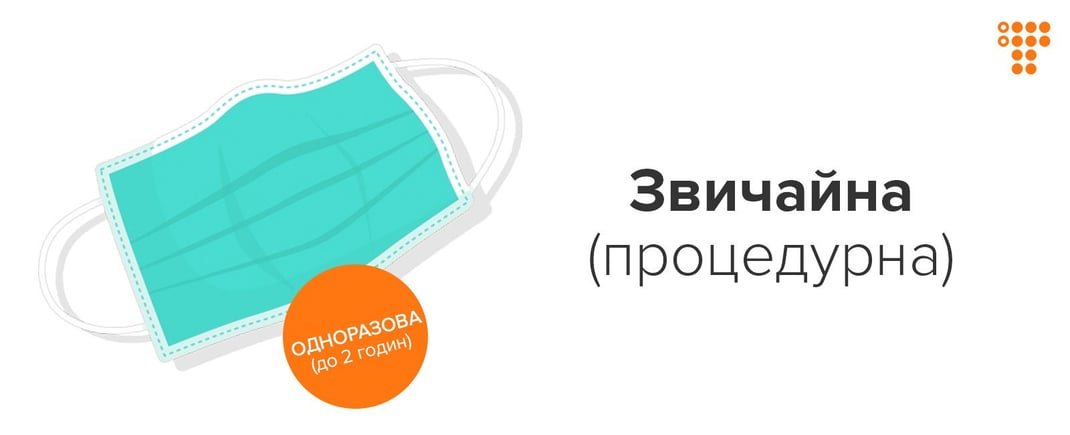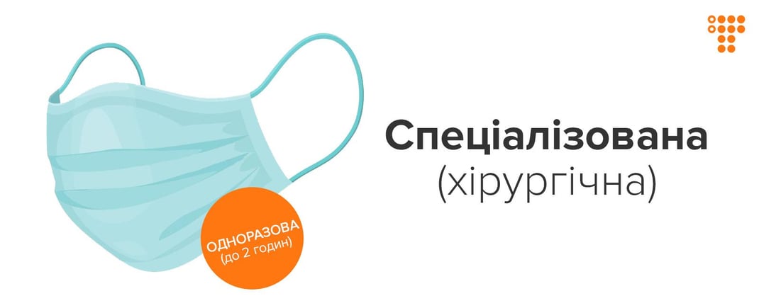 Це маска, яка складається з чотирьох шарів: два зовнішні, фільтрувальний і шар, що не пропускає рідину. Таку маску можна використовувати щонайбільше дві години.