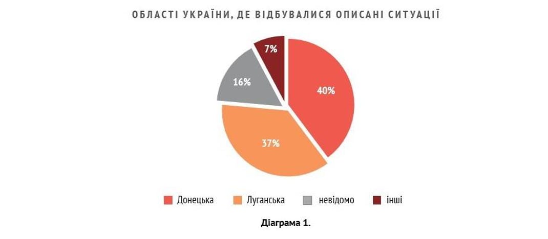 Із 261 ситуації 104 стосувалися Донецької (майже 40%), 96 — Луганської (майже 37%), 20 — інших областей України (майже 8%).