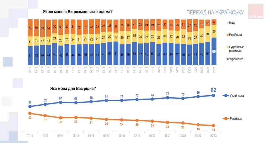 Водночас серед російськомовних та двомовних українську мову стали частіше використовувати 45% українців, зокрема 18% — постійно, а 17% — часто.