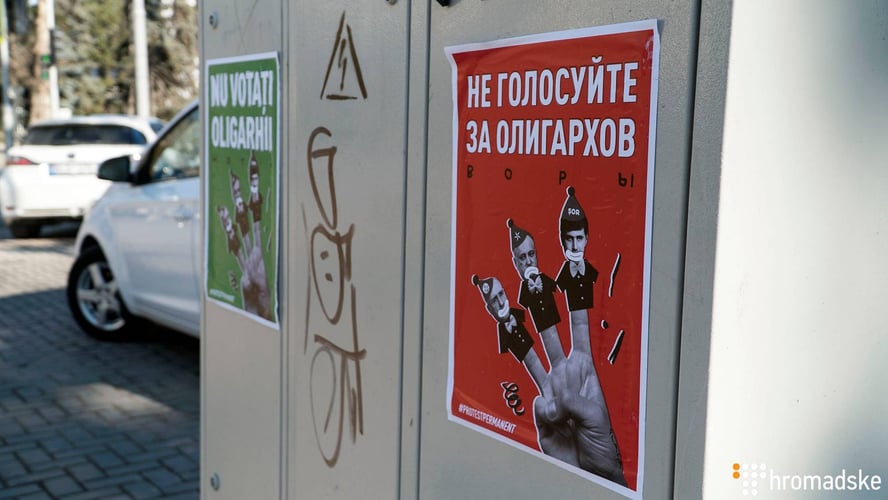 Корупція і залежність від олігархів — для Молдови велика проблема. Перед виборами по всьому Кишиневу розклеїли постери із колажем, де основні політики зображені клоунами-маріонетками Влада Плахотнюка. Серед них — ще один олігарх Ілан Шор, який має свою партію. Суд визнав його винним у крадіжці одного мільярда доларів з молдовського банку, однак чоловік подав апеляцію, тож наразі може балотуватися у парламент.