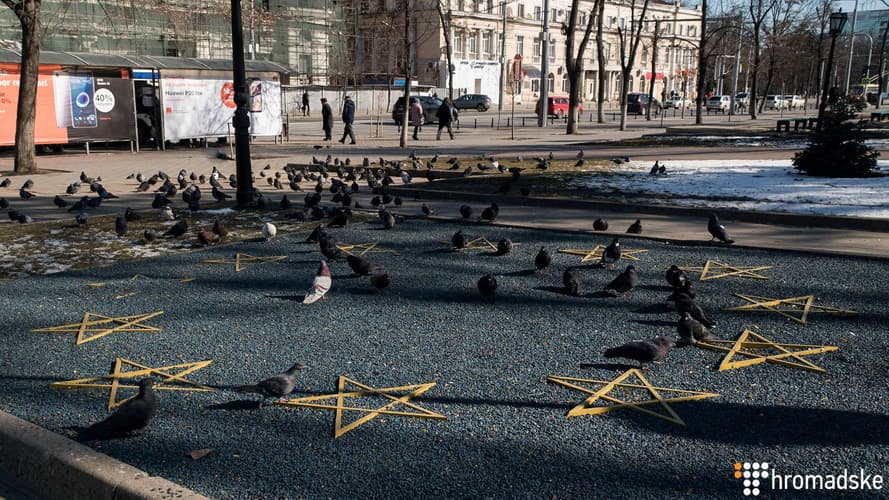 — Звісно! В нас же море грошей, правда? Ми ж не маємо їх куди діти! Гляньте, люди жебрають на вулиці, не мають що їсти, — чоловік киває у бік бабусі, яка стоїть навпроти і просить милостиню. — А ви тут макулатуру роздаєте. Всіх ваших політиків треба посадити в тюрму! Одні злодії, разом з вашим президентом!