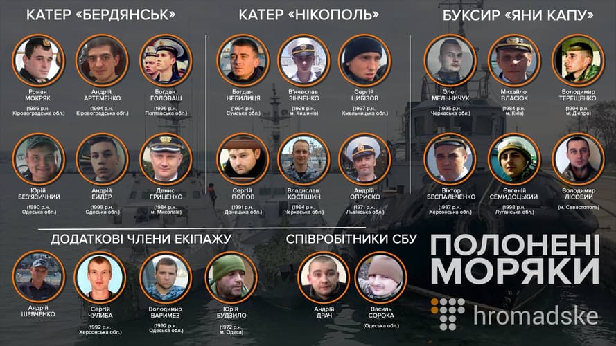 Нагадаємо, зранку 25 листопада 2018 року українські кораблі та рейдовий буксир планово вийшли з порту Одеси до порту Маріуполя. Під час цього завдання російське судно протаранило український буксир та пошкодило його. При виході з Керченської протоки російські судна обстріляли та захопили українські кораблі біля Керченської протоки. Загалом на трьох суднах були 24 українських військових, двоє з них службовці СБУ. Троє з них дістали поранення.