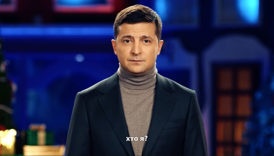 Тоді Зеленський намагався максимально дистанціюватися від меж, заданих попередніми президентами: замість класичного костюма приміряв «офіс кежуал», обрав декорації «95 кварталу» замість ялинки на вулиці, залучив колишніх колег-артистів та розпочав привітання зі своєрідного зламу четвертої стіни.