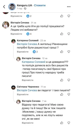 «А це доведено? Та поліція допекла всіх без рашистів — тепер писатимуть свої брехні про гроші. Про помсту народну треба писати!», — відповіла вчителька.