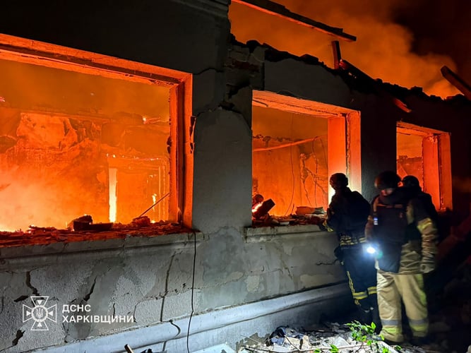 У Сумах окупанти рано-вранці поцілили в будівлю. Після першого влучання росіяни завдали повторного удару, коли на місці вже працювали рятувальники.