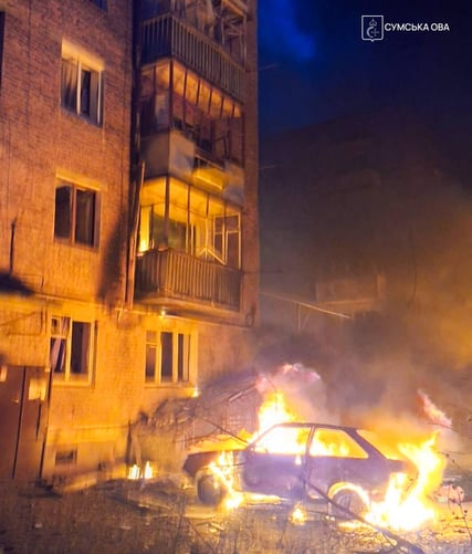 росіяни атакували місто Конотоп, що в Сумській області, ударними безпілотниками. Як повідомив міський голова Артем Семеніхін, окупанти поцілили в адміністративну будівлю та житловий будинок.