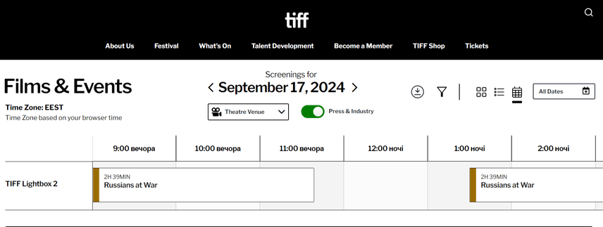 В расписании Международного кинофестиваля в Торонто (TIFF) стоит фильм «россияне на войне» от режиссера Анастасии Трофимовой, изображающий оккупантов «обычными людьми». Еще раньше организаторы говорили, что отменили показы фильма.