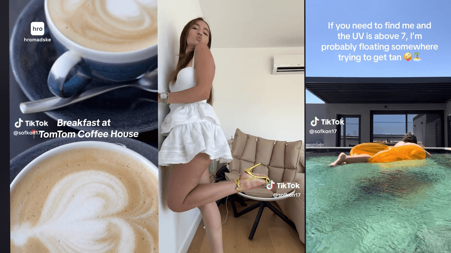Софии 21 год, она молодая мама, живет одновременно на Кипре и в Лондоне и ведет TikTok. Там она постит видео, как проводит время со своим сыном, купается в море или бассейне. В конце концов иногда показывает подписчикам, как распаковывает босоножки, стоимость которых равна месячной зарплате четырех украинских учителей. София Кононенко в своих видео никогда не упоминает Родину, только в шапке профиля написано, что она из Украины, и иногда где-то в аэропортах попадаются кадры с украинским паспортом в руках.