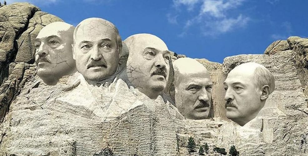 Белорусский художник и дизайнер Владимир Цеслер создал белорусскую версию скалы президентов. На ней художник изобразил 5 лиц президента Беларуси Александра Лукашенко, который руководит государством с 1994 года и уже пять раз прошел через президентские выборы.