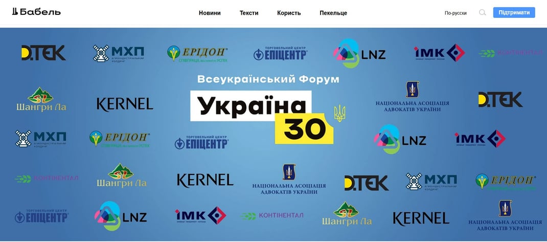 Кроме того, по данным издания, участие в «Украине 30» для представителей бизнеса и общественных деятелей было платным. «Бабель» получил подтверждение об оплате участия по крайней мере двух бизнесов — ДТЭК Рината Ахметова и МХП Юрия Косюка. Называть точную сумму в компаниях отказались.