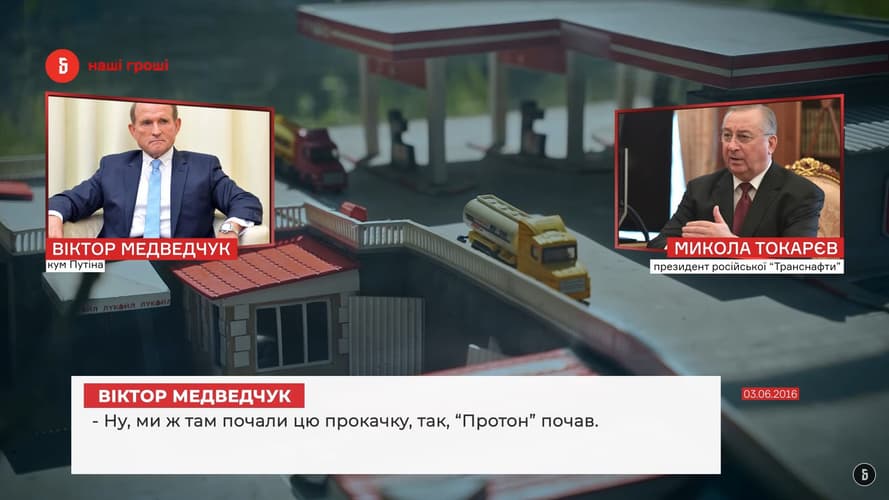 При этом топливо из России в «трубу» начала гонять компания «Протон», которая в Украине стала владельцем сети АЗС Glusco. Журналисты-расследователи связывали обе с Медведчуком, тогда как он это опровергал.