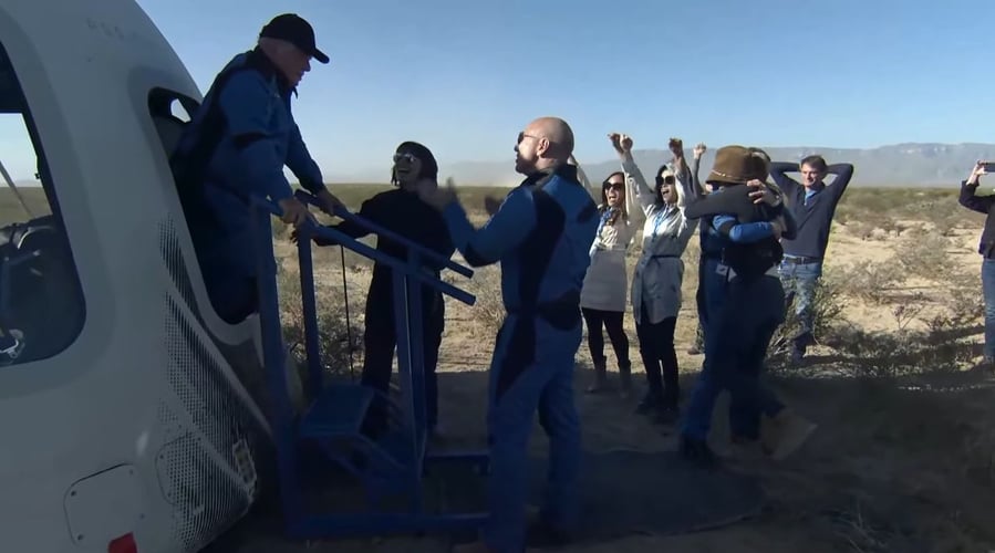На месте приземления туристов встречали команда Blue Origin, друзья и родственники, а также сам основатель компании Джефф Безос. После завершения своего полета в космос Шэтнер заявил, что «все в мире должны сделать это».