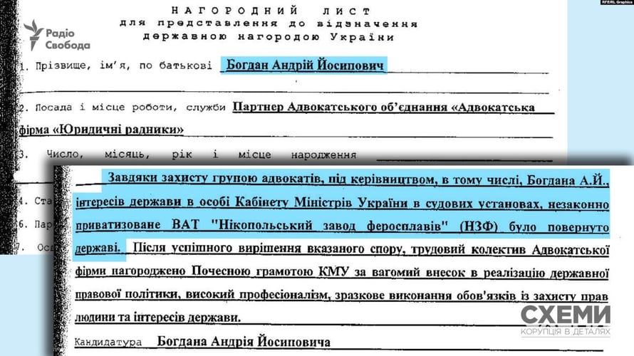 Богдан получил звание «заслуженный юрист Украины» за то, чего не делал — «Схемы»