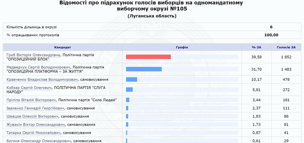 Брат Виктора Медведчука Сергей проиграл на избирательном округе Луганской области представительнице «Оппозиционного блока», которая работает в компании «ДТЭК ЭНЕРГО» олигарха Рината Ахметова.