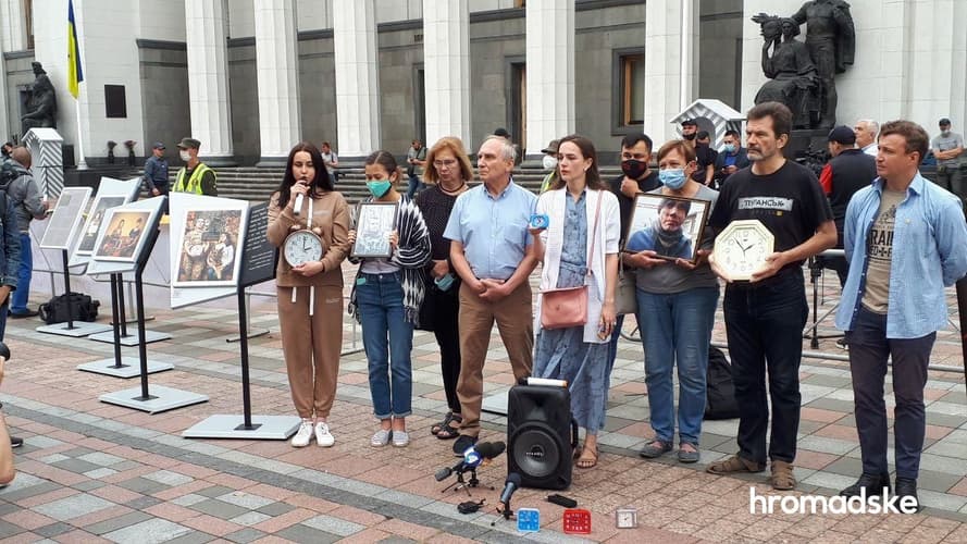 Жертвы военных преступлений и родные пострадавших собрались у Верховной Рады на акцию «Будильник для депутатов от жертв военных преступлений». Они требуют, чтобы депутаты приняли закон о военных преступлениях. Несмотря на то, что в Украине седьмой год идет война, такого закона до сих пор нет, а следовательно, дела об убийствах и пытках украинских пленных без должного наказания.