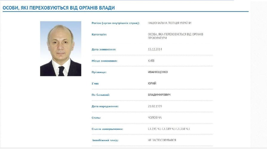 Экс-регионала Иванющенко вернули в базу разыскиваемых лиц