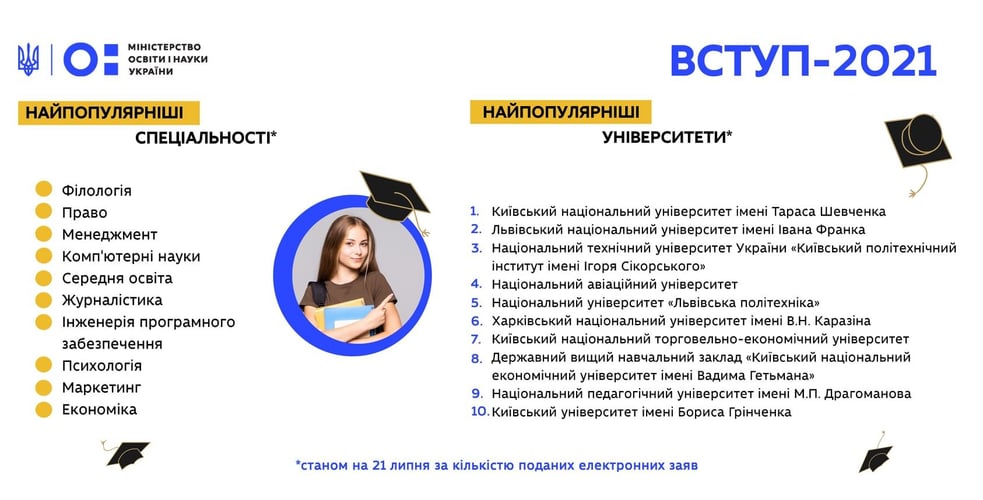 - Киевский национальный университет имени Тараса Шевченко — 38 878 заявок;