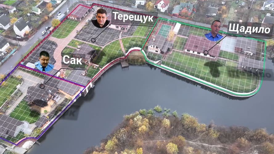 А теперь сюрприз! Строил дома и жил Щадило здесь не один. Соседнее имение, которое строилось одновременно с имением Щадило, принадлежит… бывшему начальнику генерала — Александру Терещуку. Еще один участок рядом с имением, значительно более скромный, принадлежит Виктору Саку — еще одному милицейскому генералу времен Януковича, который возглавлял Тернопольский главк.