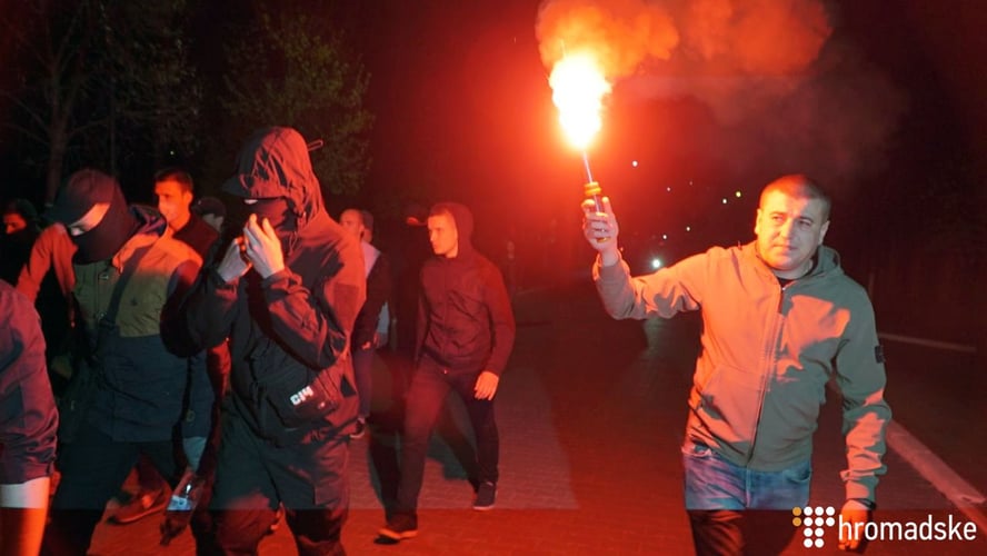 В то же время, среди собравшихся были заметны несколько человек с шевронами праворадикальной организации С14.
