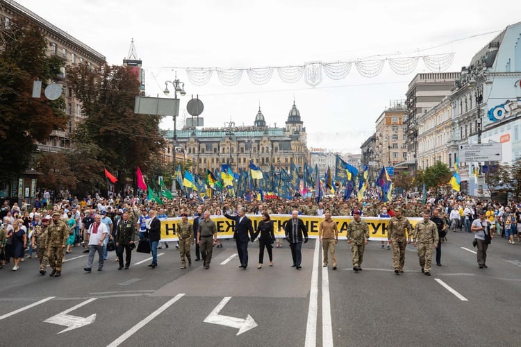 Напомним, в марше участвовали как военные, так и волонтеры, медики, семьи погибших, пропавших без вести, родственники героев Небесной сотни, представители инициативы Free Riff и других движений. Немало было и гражданских.