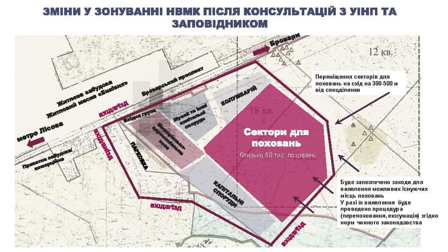 Депутат Киевсовета Ксения Семенова также опубликовала план изменения зонирования мемориала после консультаций с УИНП и заповедником «Быковнянские могилы».