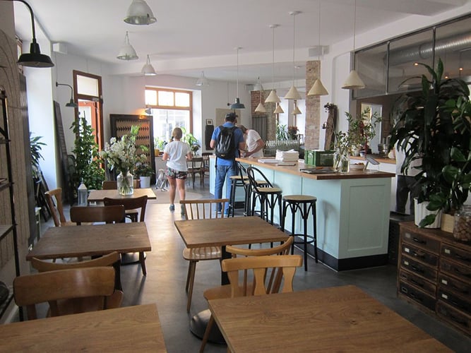Ресторан Frea в центральном районе Берлина Митте — первый и пока единственный в Германии ресторан не производящий мусора. Принцип Zero Waste, или «ноль отходов», в каждой детали. Декоративное панно на стене — переплавленный строительный мусор. Комнатные цветы в горшках купили по частным объявлениям через платформу eBay, так же как и стулья — они все разной формы. Над баром висят лампы, их плафоны выращены из грибницы. За барной стойкой можно увидеть кухню, где готовят только веганские блюда: без мяса, рыбы, молочных продуктов и меда.