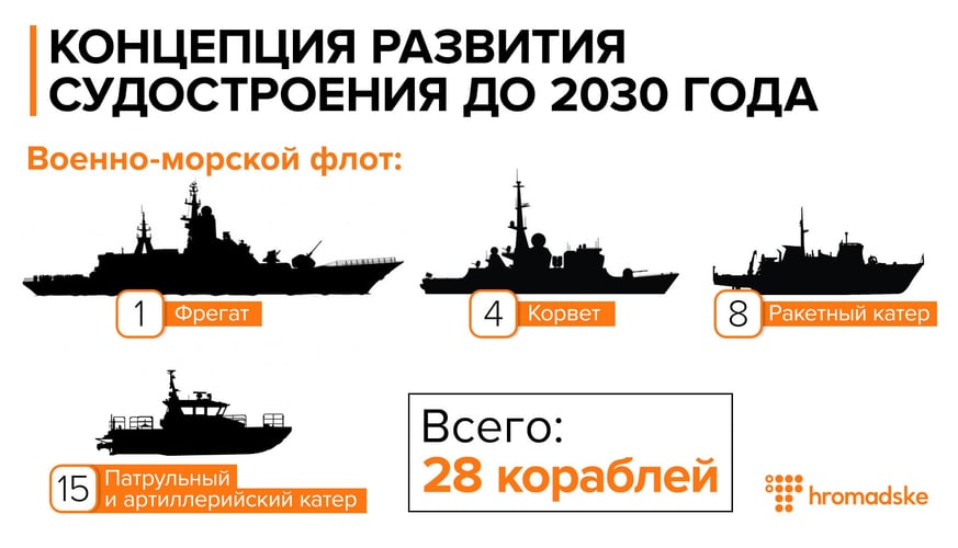 «До конца периода будут полностью удовлетворены потребности ВМС Украины в современных кораблях, завоеваны новые сегменты рынка военно-морской техники», — говорится в концепции.