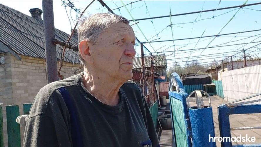 В этом доме в Красногоровке супруги прожили вместе 60 лет, родили двоих детей, у них четверо внуков. Они сейчас живут в Харьковской области. Валерий переживает, что из-за войны не может прислать детям пенсию, а они не могут к ним приехать. Он снова обращается к жене.