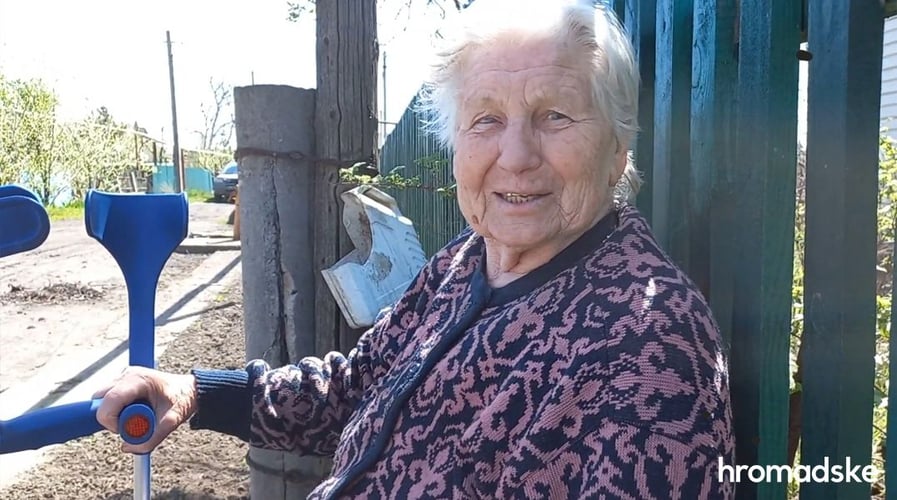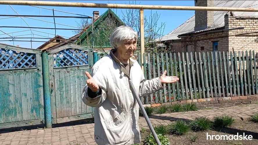 «Дом разбит уже дважды, — жалуется Надежда Сологуб. — Пенсию едва получила. За гуманитаркой я не способна ходить. Так и живу. Как собака бездомная, с биркой на ухе».