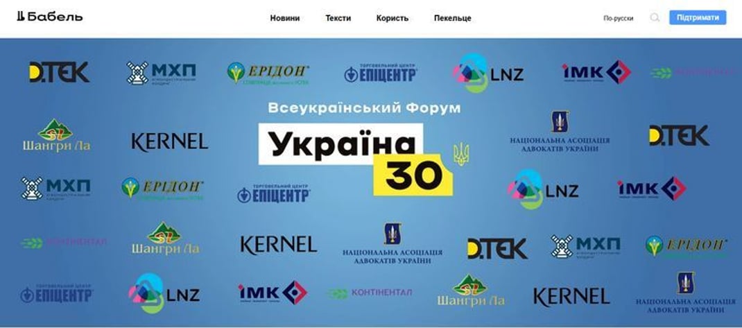 Издание заявило, что участие в «Украине 30» для представителей бизнеса и общественных деятелей было платным. Бабель получил подтверждение об оплате участия по крайней мере двух бизнесов — ДТЭК Рината Ахметова и МХП Юрия Косюка. Называть точную сумму в компаниях отказались.