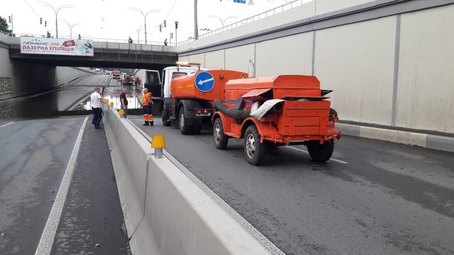 Как сообщили в коммунальной корпорации «Киевавтодор», из-за переполнения выводных ливнесточних магистралей и подземных русел рек подтоплена проезжая часть на улице Богдана Гаврилишина (вблизи проспекта Победы), улице Елены Телиги, улице Кирилловской (возле стадиона «Спартак») и др.