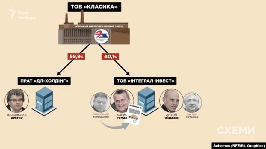 Глава Конституционного суда Александр Тупицкий принимал теневое участие в приватизации Зуевского энергомеханического завода донецким бизнесменом Владиславом Дрегером.