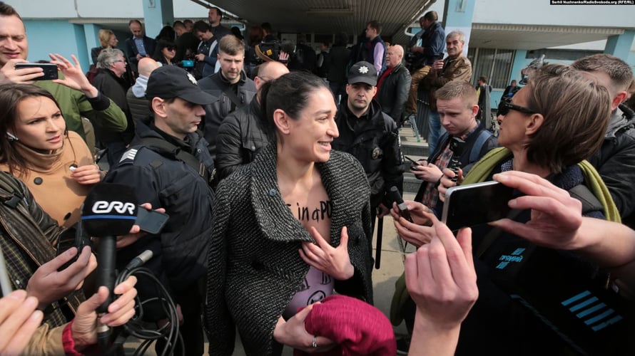На активистку движения Femen, которая подняла свою юбку перед президентом Владимиром Зеленским возле избирательного участка, составили административный протокол за мелкое хулиганство.