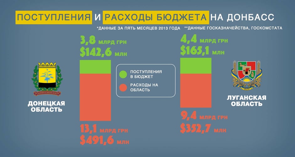 Дотации на уголь — 30% всех отчислений из госбюджета в Донецкую и Луганскую области. Последние годы перед войной эти регионы получали, кроме того, еще и деньги на проекты государственного значения, а также компенсации налога на добавленную стоимость.