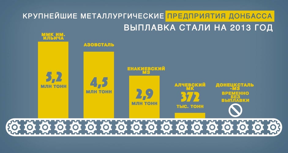 Например, доход только Енакиевского металлургического завода, который принадлежит холдингу «Метинвест» Рината Ахметова, в 2013 году составил более 12 млрд гривен ($1,42 млрд). Из них более 300 млн грн ($35,7 млн) предприятие уплатило в бюджет Украины.