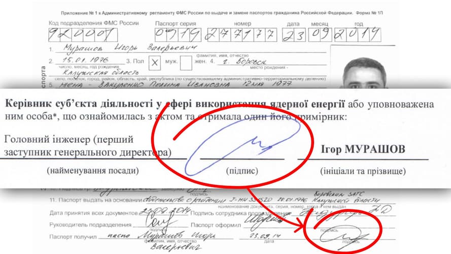 российский паспорт Мурашова — бывшего директора, а ныне главного инженера ЗАЭС