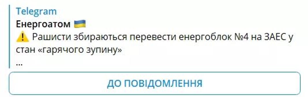 Вместо этого «Энергоатом» опубликовал новое сообщение: о том, что отказ россиян переводить пятый энергоблок ЗАЭС в состояние «холодной остановки» может привести к аварии и масштабному выбросу радиации. О четвертом блоке там уже не упоминается.